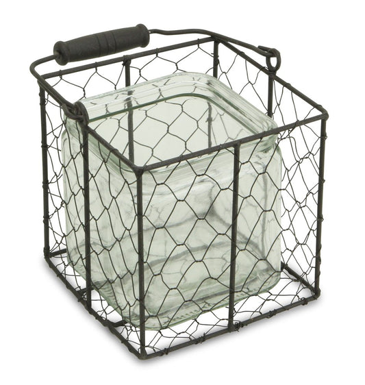 6" Clear and Brown Glass and Metal Lattice Tabletop Lantern Candle Holder