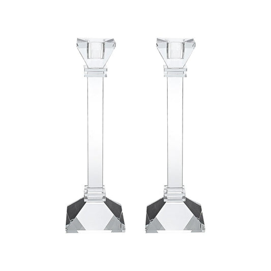 Set of Two Clear Crystal Tabletop Taper Candlesticks