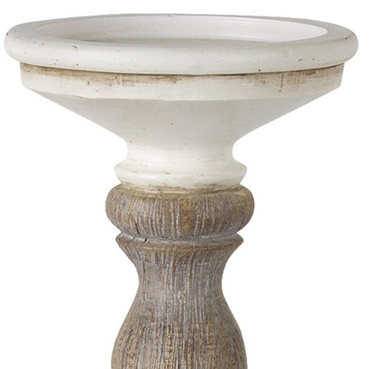 Set of Three Natural And White Distressed Geometric Polyresin Tabletop Pillar Candle Holders