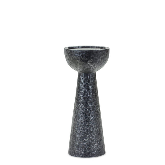 Set of Two Black Distressed Hammered Polyresin Tabletop Pillar Candle Holders