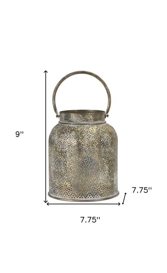 Set of Two Gray Distressed Galvanized Metal Tabletop Lantern Candle Holders