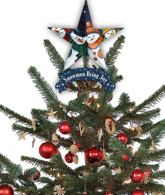 • Set of Six Star Shaped Snowmen Joy Christmas Ornaments