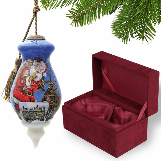 Starry Heaven and Santa Hand Painted Mouth Blown Glass Ornament