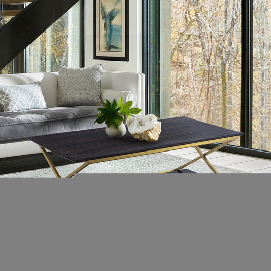 51" Dark Brown And Gold Metal Coffee Table With Shelf