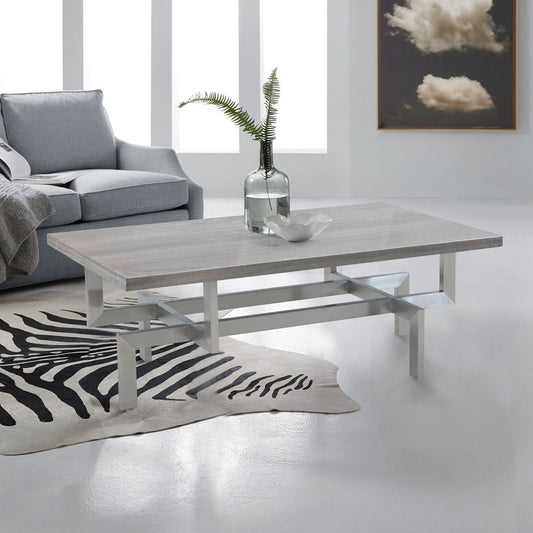 51" Gray And Silver Stainless Steel Coffee Table