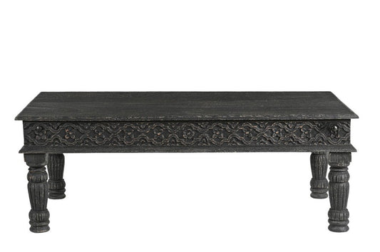 51" Black Solid Wood Distressed Coffee Table
