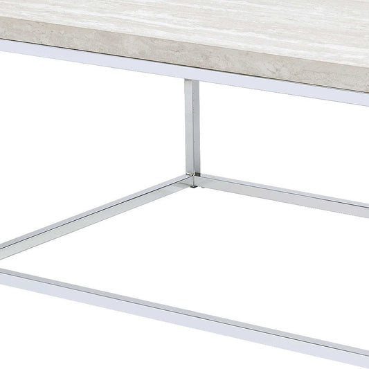 47" White and Silver Wood And Metal Frame Coffee Table With Shelf