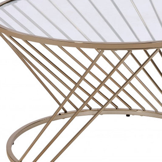 32" Clear and Champagne Glass And Metal Round Frame Coffee Table