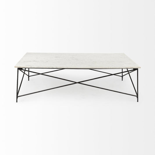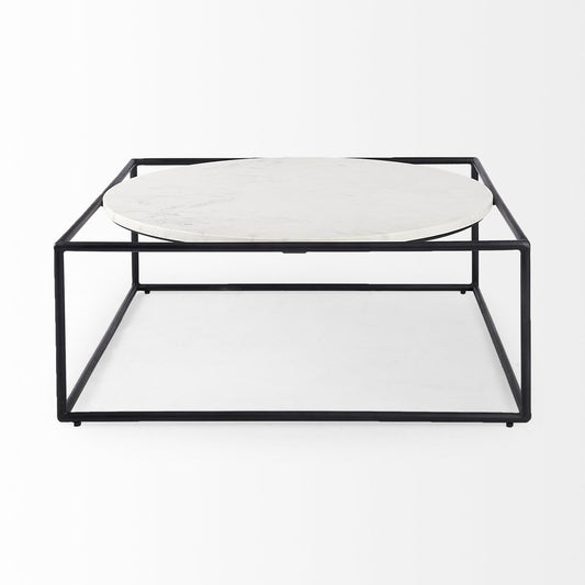 36" White and Black Genuine Marble and Metal Square Frame Coffee Table