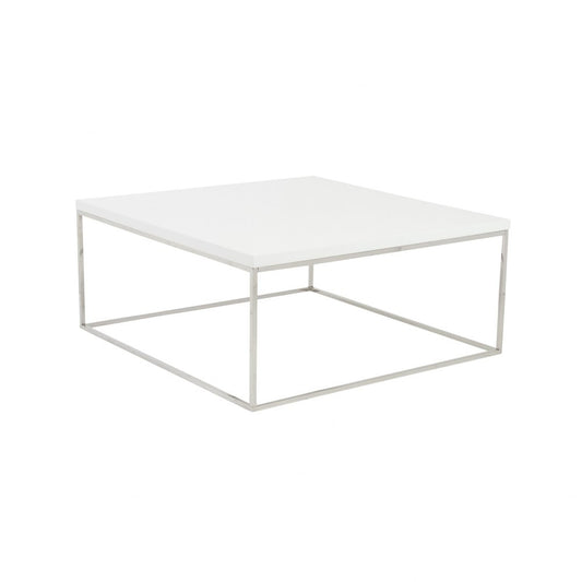 35" White and Silver Wood And Metal Square Frame Coffee Table