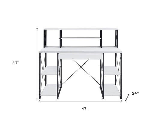 47" White and Silver L Shape Computer Desk With Three Drawers