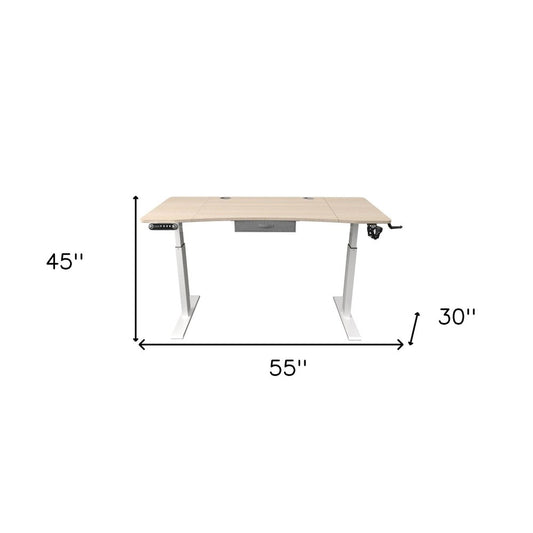 55" Adjustable Oak and White Standing Desk