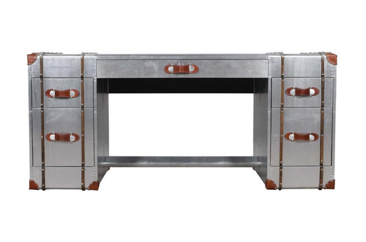 Medium Brown Wooden Writing Desk With 3 Drawers And 3 Open Shelves