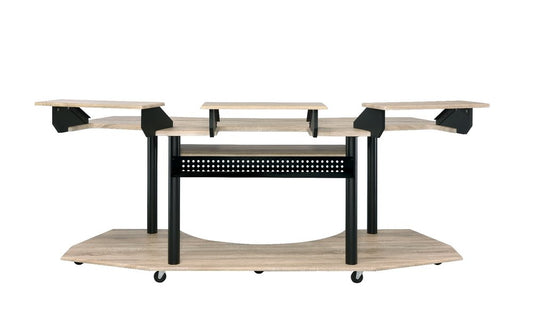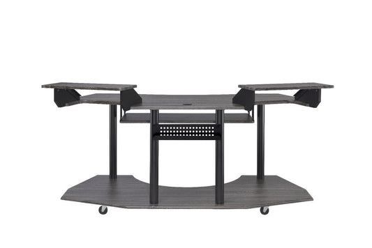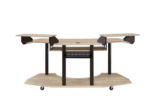 72" Brown and Black Wood and Metal Rolling Computer Desk