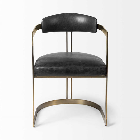 Black and Gold Upholstered Leather Open Back Dining Arm Chair