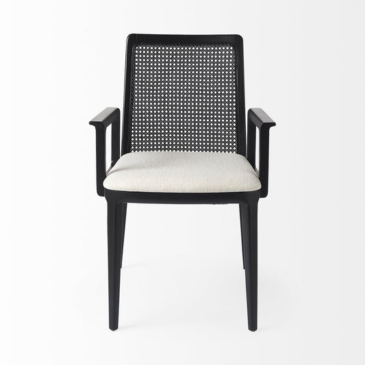 Cream And Black Upholstered Fabric Dining Arm Chair
