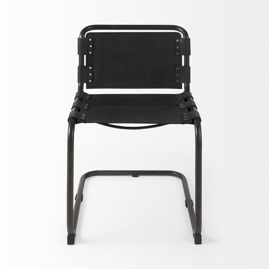 Black Leather Metal Open Back Dining Side Chair