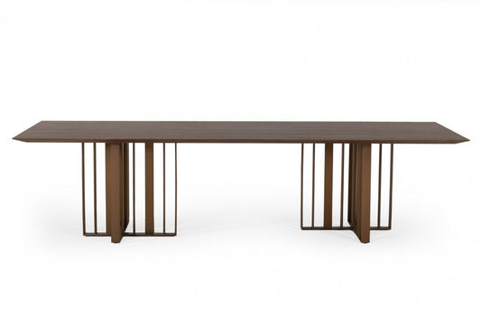 107" Walnut And Silver Rectangular Manufactured Wood And Iron Dining Table