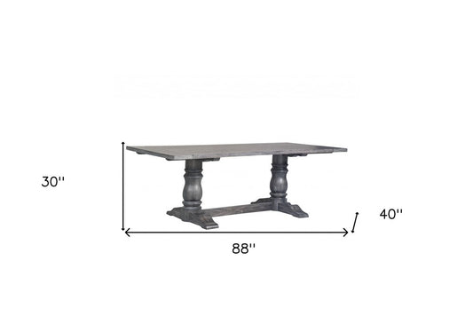 88" Light Gray And Gray Solid Wood Trestle Base Dining Table