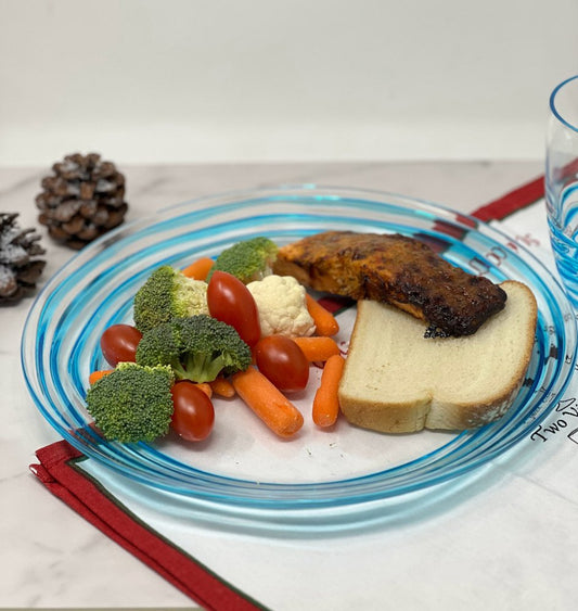 Clear and Blue Four Piece Swirl Acrylic Service For Four Dinner Plate Set