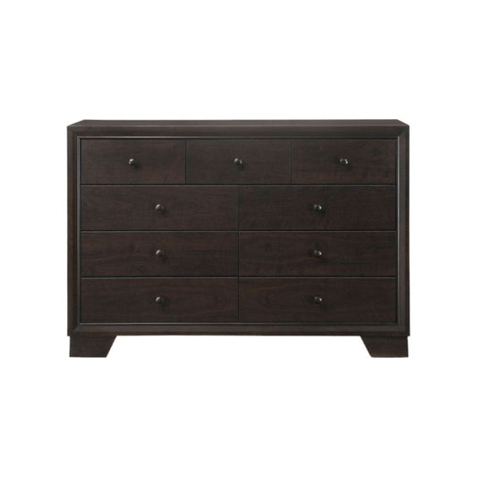 57" Espresso Solid and Manufactured Wood Nine Drawer Double Dresser