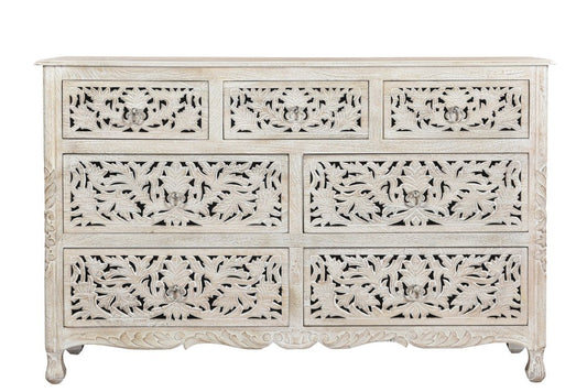 56" Brown and White Solid Wood Seven Drawer Double Dresser
