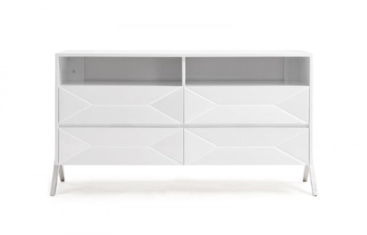 61" White Manufactured Wood Four Drawer Double Dresser