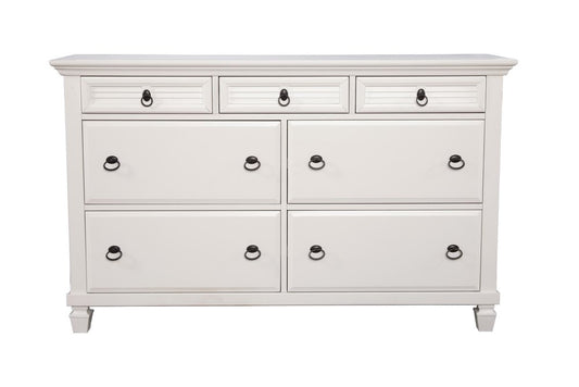 62" White Solid Wood Seven Drawer Double Dresser