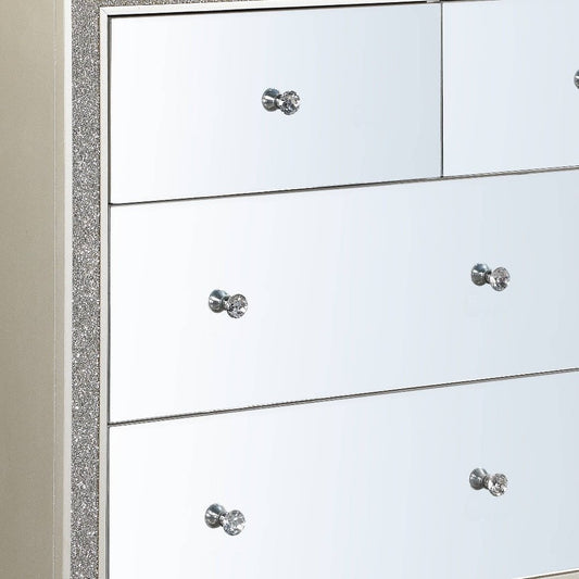 63" Champagne Solid and Manufactured Wood Mirrored Seven Drawer Triple Dresser
