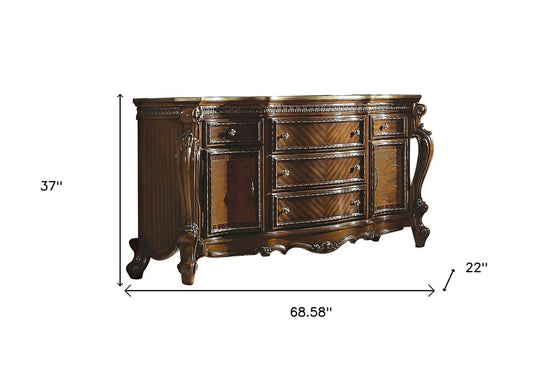 69" Brown Solid and Manufactured Wood Five Drawer Triple Dresser