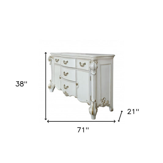 71" Pearl Solid and Manufactured Wood Five Drawer Triple Dresser