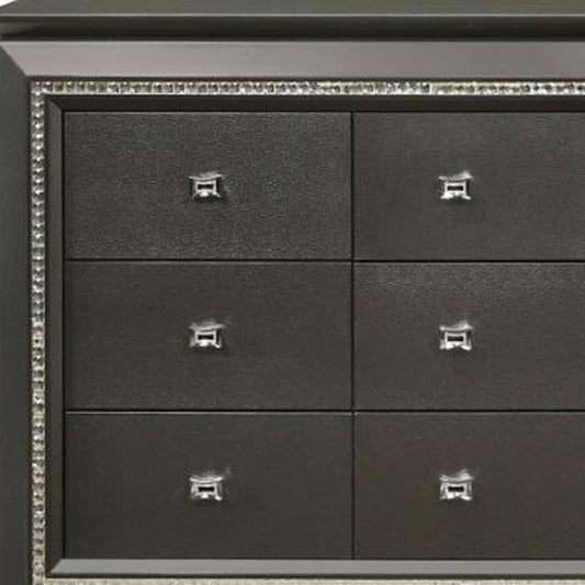 69" Gray Solid Wood Six Drawer Triple Dresser