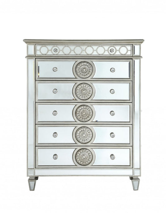 23" Gray and Black Steel and Fabric Five Drawer Chest