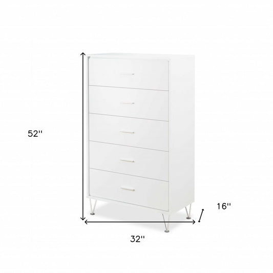 32" White Five Drawer Standard Chest