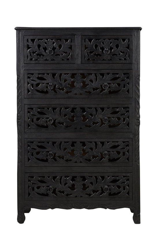 35" Black Solid Wood Six Drawer Chest