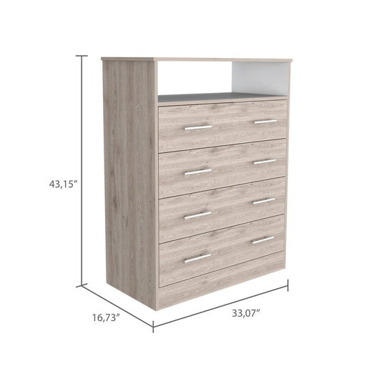 33" Light Gray Four Drawer Standard Chest With Open Shelf
