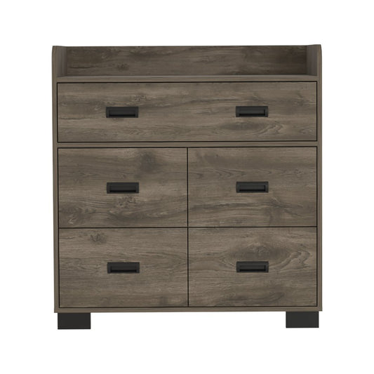 33" Dark Brown Manufactured Wood Five Drawer Dresser