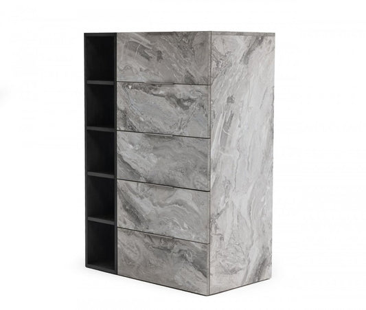 35" Grey Manufactured Wood Five Drawer Chest