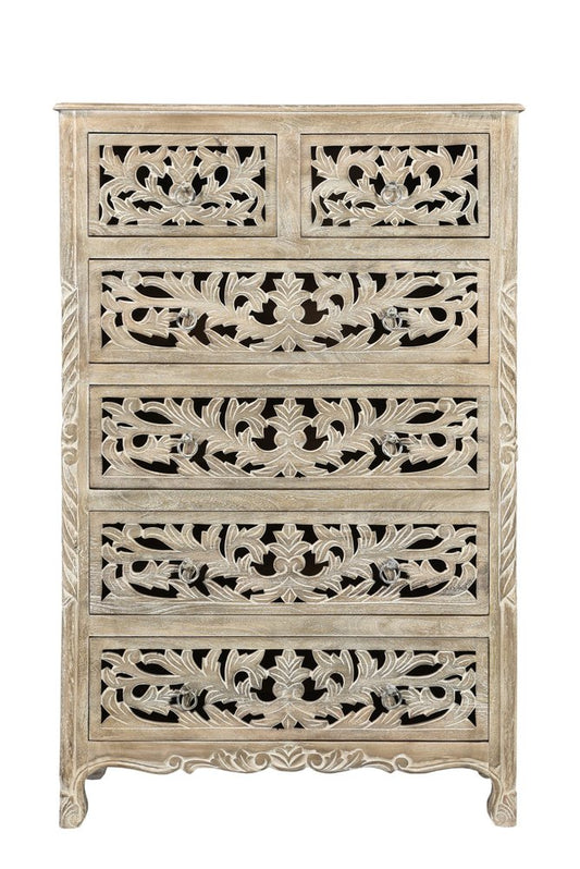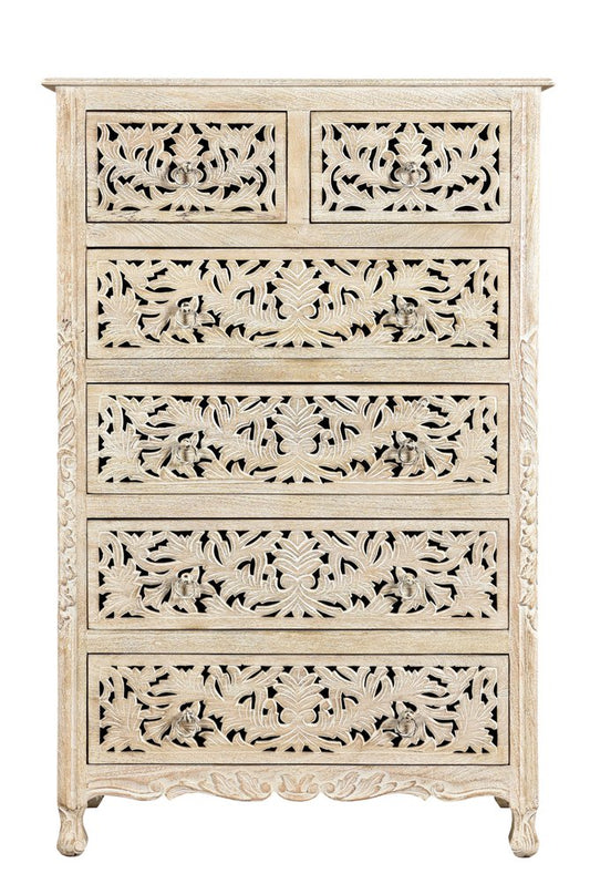 35" White Solid Wood Six Drawer Chest
