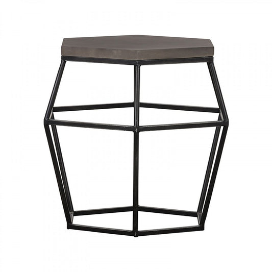 Modern Gray Concrete and Black Metal Hexagonal End Table