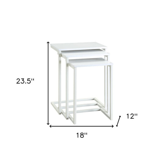 Set of Three 24" White Solid Wood And Steel Nested End Tables