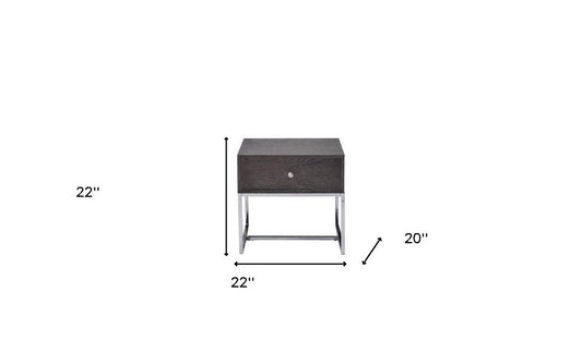 22" Chrome And Gray Oak Manufactured Wood Rectangular End Table With Drawer