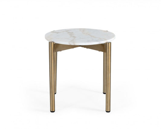 22" Gold And White Marble Round End Table