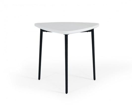 22" Black And White Marble Triangle End Table
