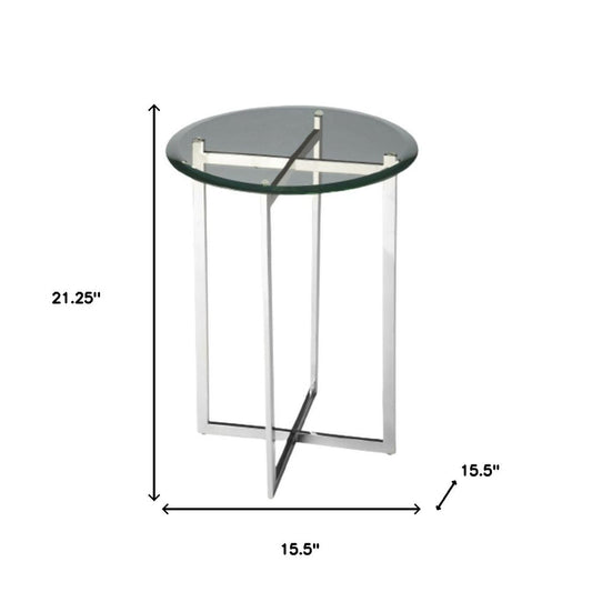 21" Clear And Silver Glass and Stainless Steel Round End Table