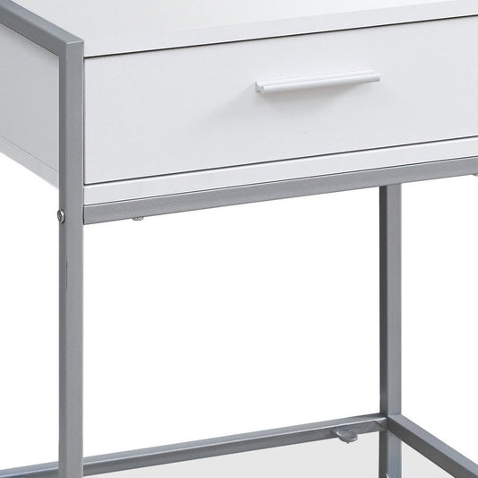 22" White Manufactured Wood And Metal Rectangular End Table With Drawer And Shelf
