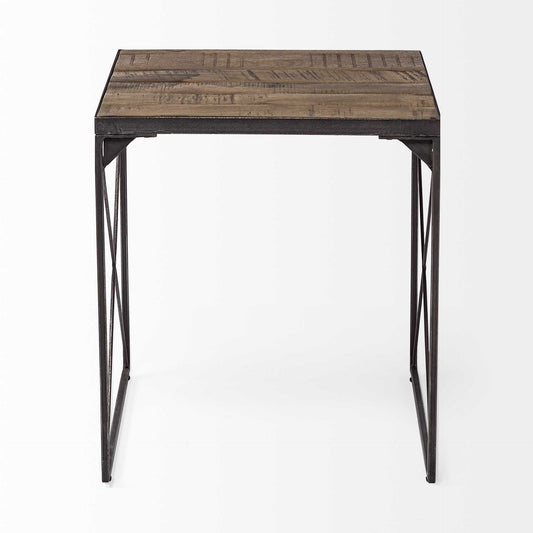 22" Silver and Brown Reclaimed Wood Glass and Steel Square End Table