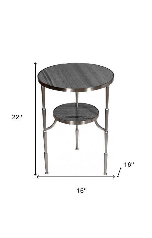 22" Nickel Marble And Iron Round End Table