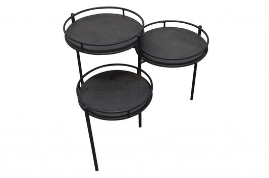 23" Black Solid Wood And Iron Round End Table