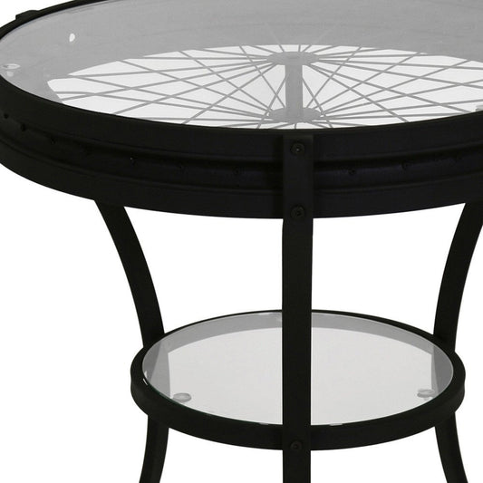 24" Black And Clear Glass And Metal Round End Table With Shelf